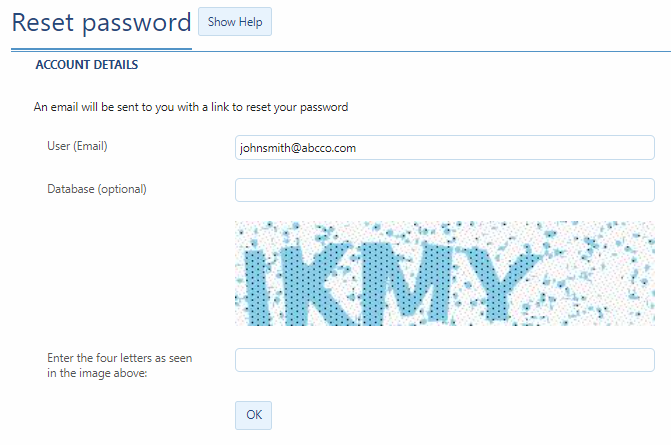Previously, users had to enter their database name as a part of the reset password process. However, most end users do not remember their database name, so we have removed the database name requirement but implemented a CAPTCHA to prevent misuse.