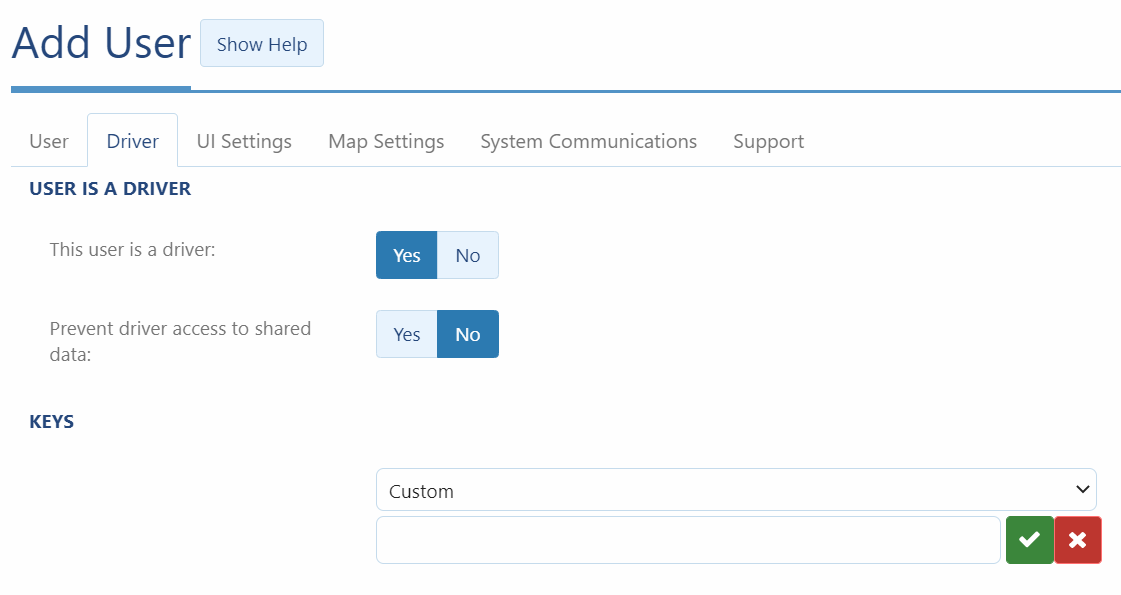 Third-party keys for drivers can now be added as custom keys in MyGeotab. Simply open the Edit User page and add the key under the Driver tab, or add the key under the same tab when adding a new user.
