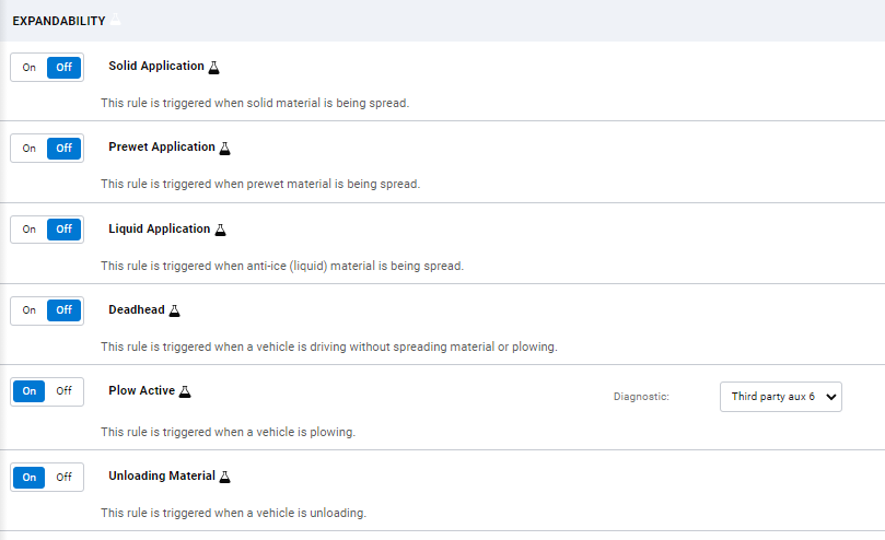 The plow input for Deadhead and Plow Active rules are set to Third party aux 5 by default. Users can change the input depending on the installation but the input number for both rules must be the same.