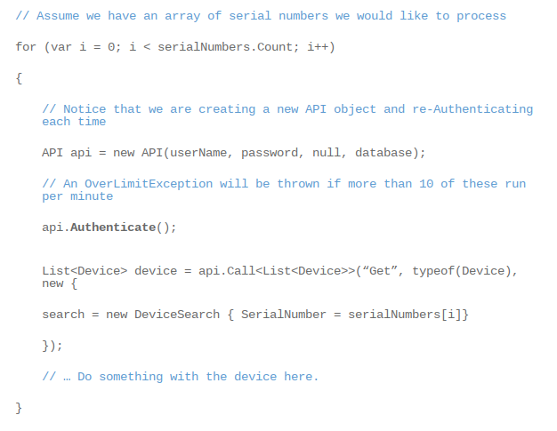 Starting in November 2016, Geotab will introduce API call limits on the number of Authentication requests it will accept, to ensure optimal performance.