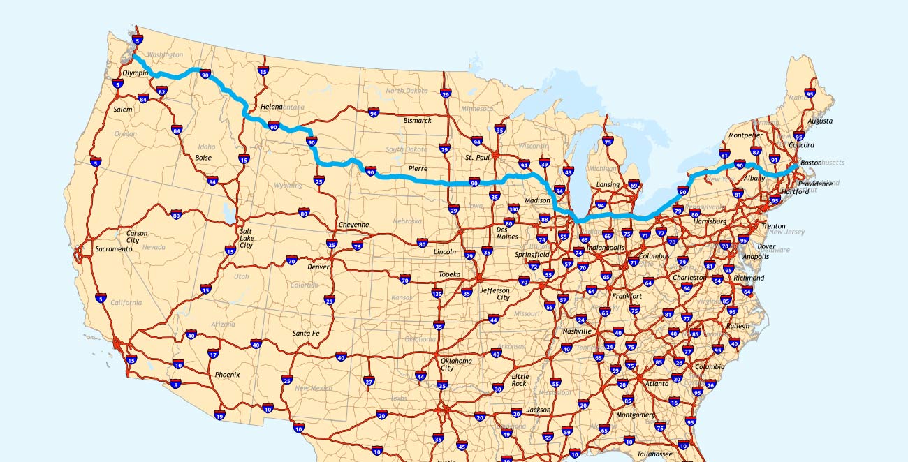 Interstate 90 stretches over 3,000 miles from Seattle to Boston.
