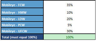 This report applies Mobileye rules to the Risk Management report in order to measure and log the number of warnings. The report takes into account the total mileage driven to normalize the events/100 distance units. The graphical display of scores over previous weeks allows for an easy visualization of driver trending behavior.