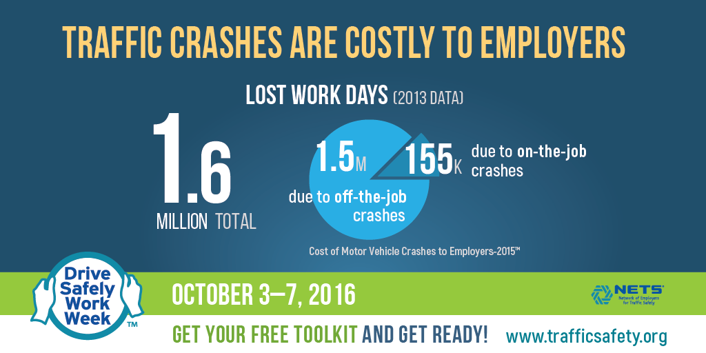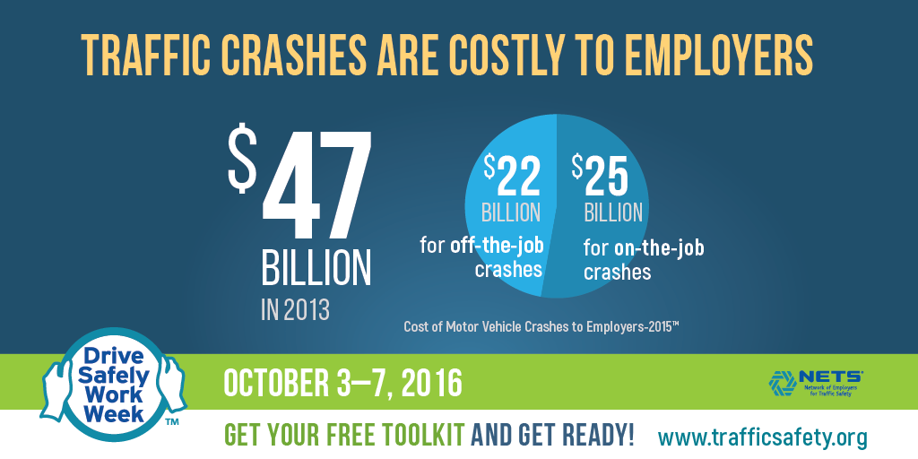 Traffic crashes are costly to employers: $25 billion for on-the-job crashes and $22 billion for off-the-job crashes.