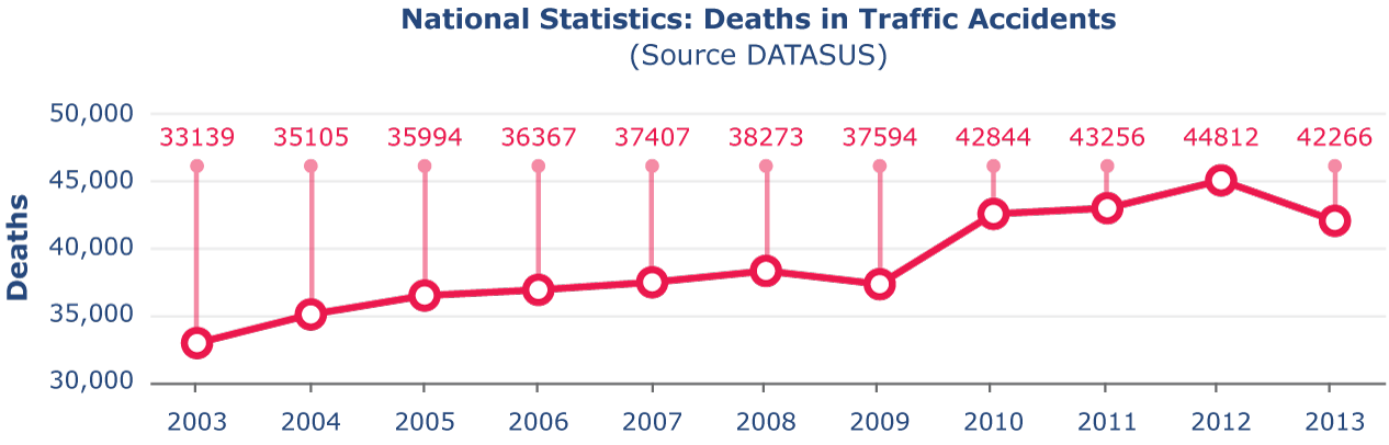 The statistics on vehicle accidents and related deaths and injuries in Brazil further illustrate the road safety crisis. Proportionally similar statistics can be found for countries such as Mexico, Argentina and Colombia, although more recent statistics are unavailable.
