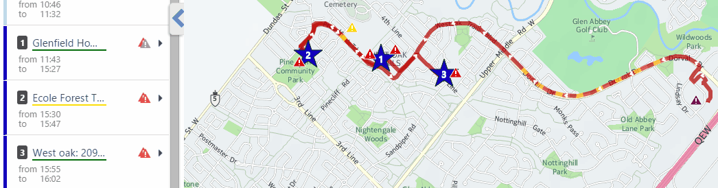 Figure 1: Mouse over a trip to view the corresponding route on the map.