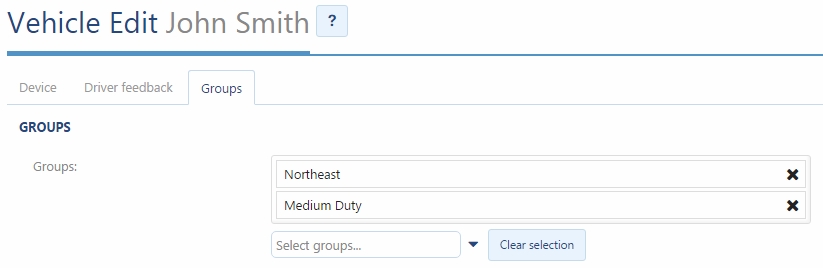 Quick edit functionality has been added to the Vehicle Edit section. When a vehicle is assigned to multiple groups, you can click the “x” to remove it from the group, while leaving the other assignments in place.