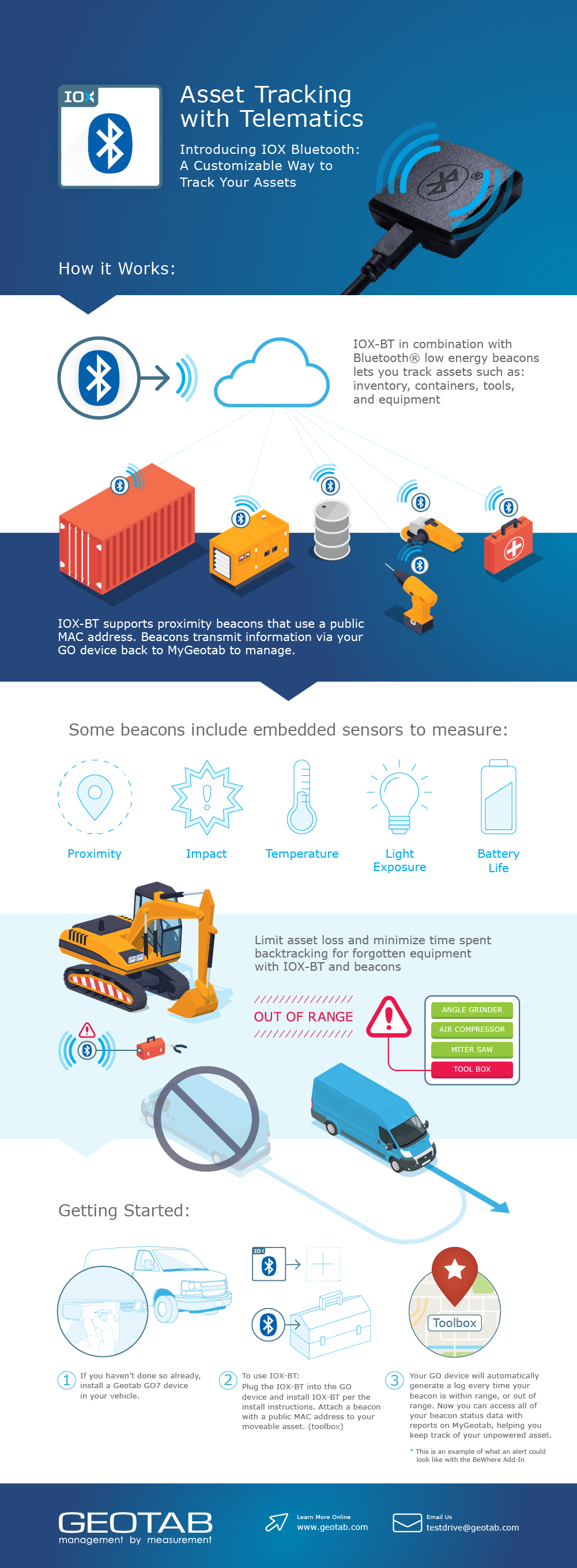 In addition to the wider economic benefits to the logistics sector, tracking your movable assets helps: increase asset utilization, reduce delays from misplaced equipment, boost productivity, reduce operational costs, and improve on-time delivery. And, with the launch of Geotab’s IOX Bluetooth (IOX-BT), a Bluetooth® low energy Add-On, doing that just got a little easier. Read more about IOX-BT here.