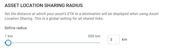 We’re continuing to improve the design and usability of the Share Asset Location feature. We’ve added a Location Radius Setting to accommodate use cases where Customers may need visibility of longer distances between the asset and the target destination.