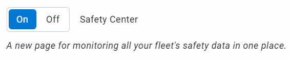 We are excited to introduce Safety Center in Feature Preview! Safety Center is a one-stop shop for your safety-related information. It provides Fleet Managers and Fleet Administrators with fleet optics and exception insights, allowing you to compare to other fleets of similar size and groups, as well as Peer Group Leaders.
