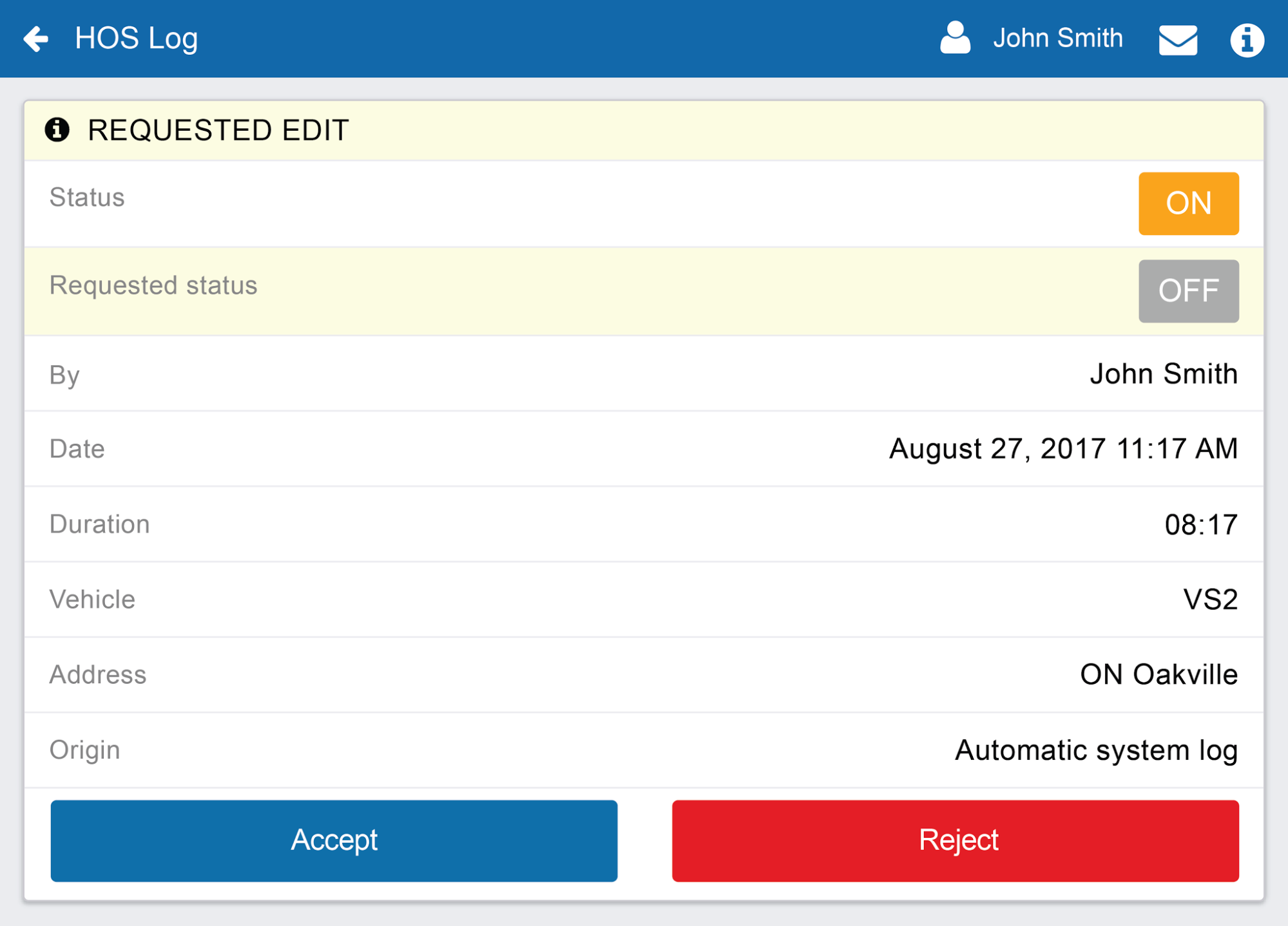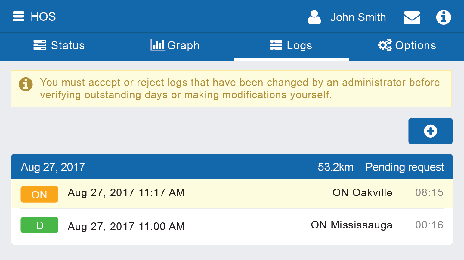 Driver Sign Off on Carrier Log Edits — If a carrier edits a driver’s log, the driver must review and accept the change before the log is marked “Active.”