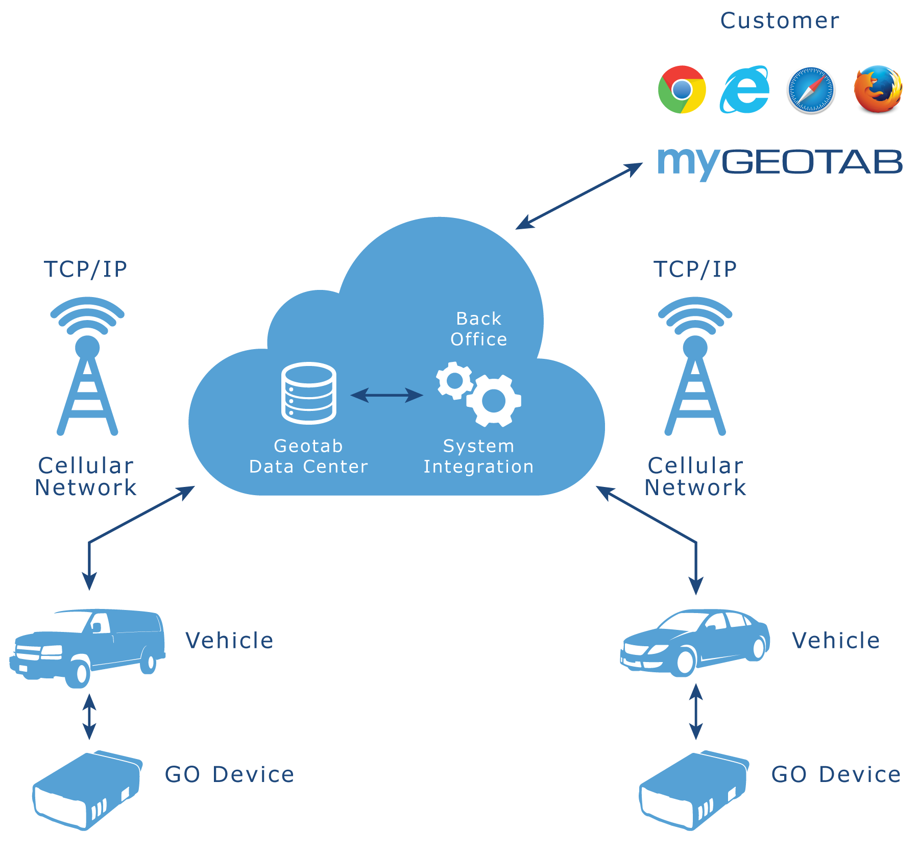 Figure 4. A high-level picture of the architecture of Geotab fleet management system.