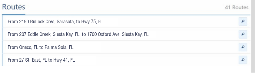 Entire routes can be sent to vehicles to dispatch a sequence of destinations that the driver should reach. Routes in MyGeotab can be created by connecting a sequence of zones together. To send a route to a vehicle, select Zones & Messages from the MyGeotab main menu and then select Routes from the sub-menu. Find the desired route from the available list of routes, and then there will be an option to send the route to the vehicle.